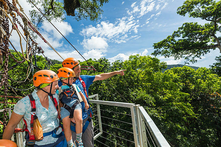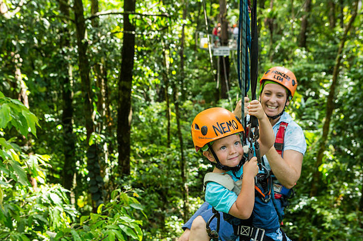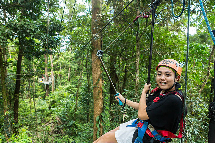 You don’t need any flying-fox experience, just a sense of adventure, and some simple appropriate clothing such as long shorts or trousers (no skirts), and a shirt that covers your shoulders so the harness doesn’t irritate. And of course, be sure to wear enclosed shoes which are securely fastened to your feet so there is no chance that they fall to the floor of the rainforest.